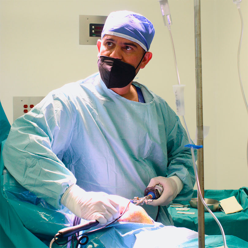 A través de una técnica mínimamente invasiva, se utiliza una pequeña cámara para examinar o reparar los tejidos dentro o alrededor de la articulación.